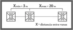 La líneas de anclaje AL6-F permiten vanos de longitud máxima de 20 metros entre puntos de anclaje o paso y longitudes mínimas de 3 metros entre puntos de anclaje o paso.