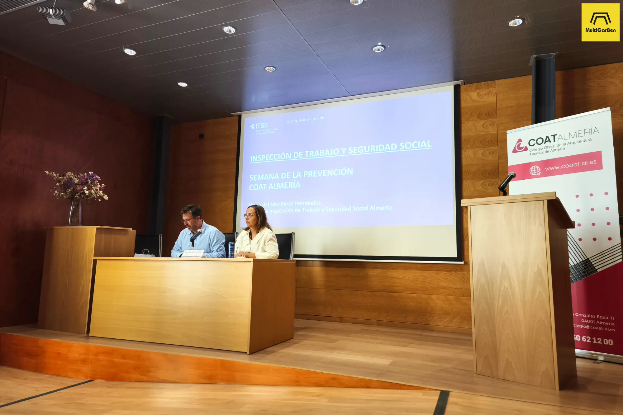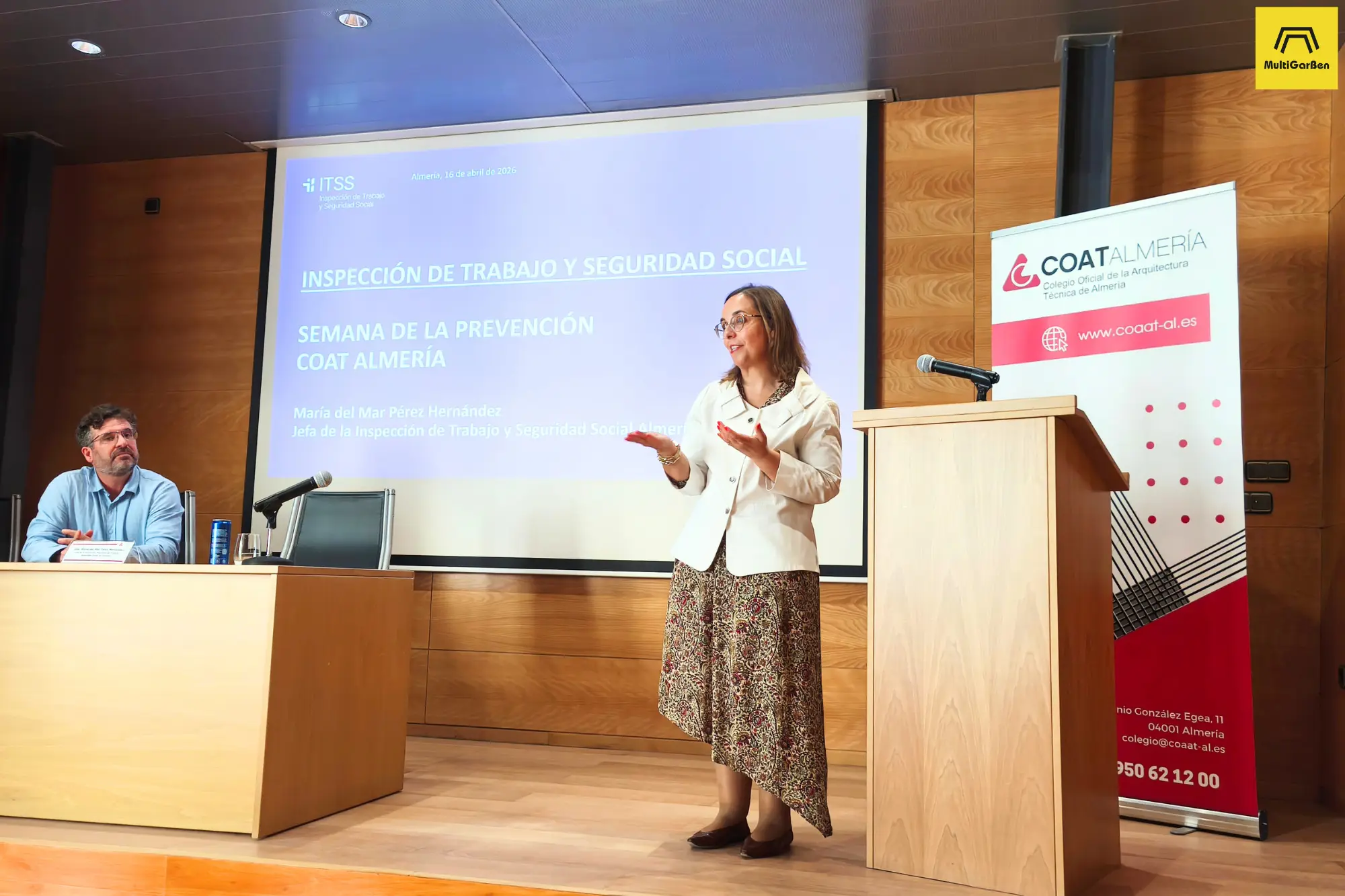 Además, fue una jornada especialmente enriquecedora porque también compartieron ponencias Jesús Matarí Ruiz, Ingeniero de Edificación y Arquitecto Técnico, y María del Mar Pérez Hernández, Jefa de la Inspección Provincial de Trabajo y Seguridad Social en Almería, aportando una visión complementaria desde la técnica y desde la inspección.
